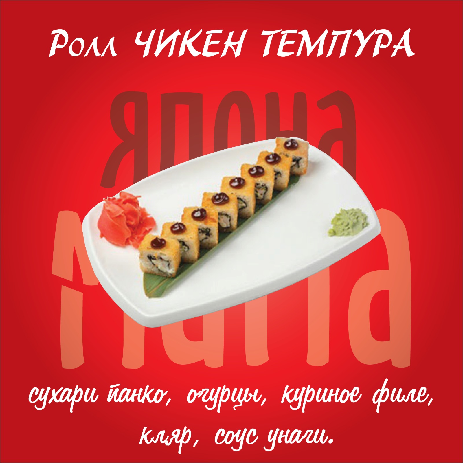 Предыдущий товар Следующий товар Чикен темпура2,690.00 ₸ Количество В корзину Категории: Роллы, Роллы жареные Похожие товары Состав Состав Роллыс лососем 1,999.00 ₸ В корзину Состав Состав РоллыЯссай 999.00 ₸ В корзину Состав Состав Роллы, Роллы запеченныеЦезарь запеченный 2,690.00 ₸ В корзину